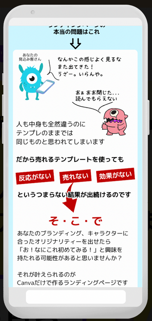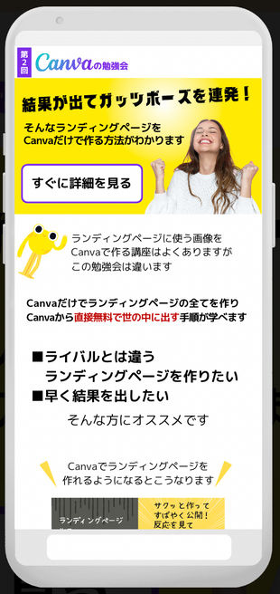 Canvaだからこそできる自由なデザインが特徴です。※広告タグやヒートマップはCanvaでは設置できませんので本格的な運用には向いておりません。オプトインや市場調査での利用がおすすめです。