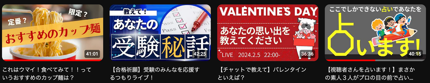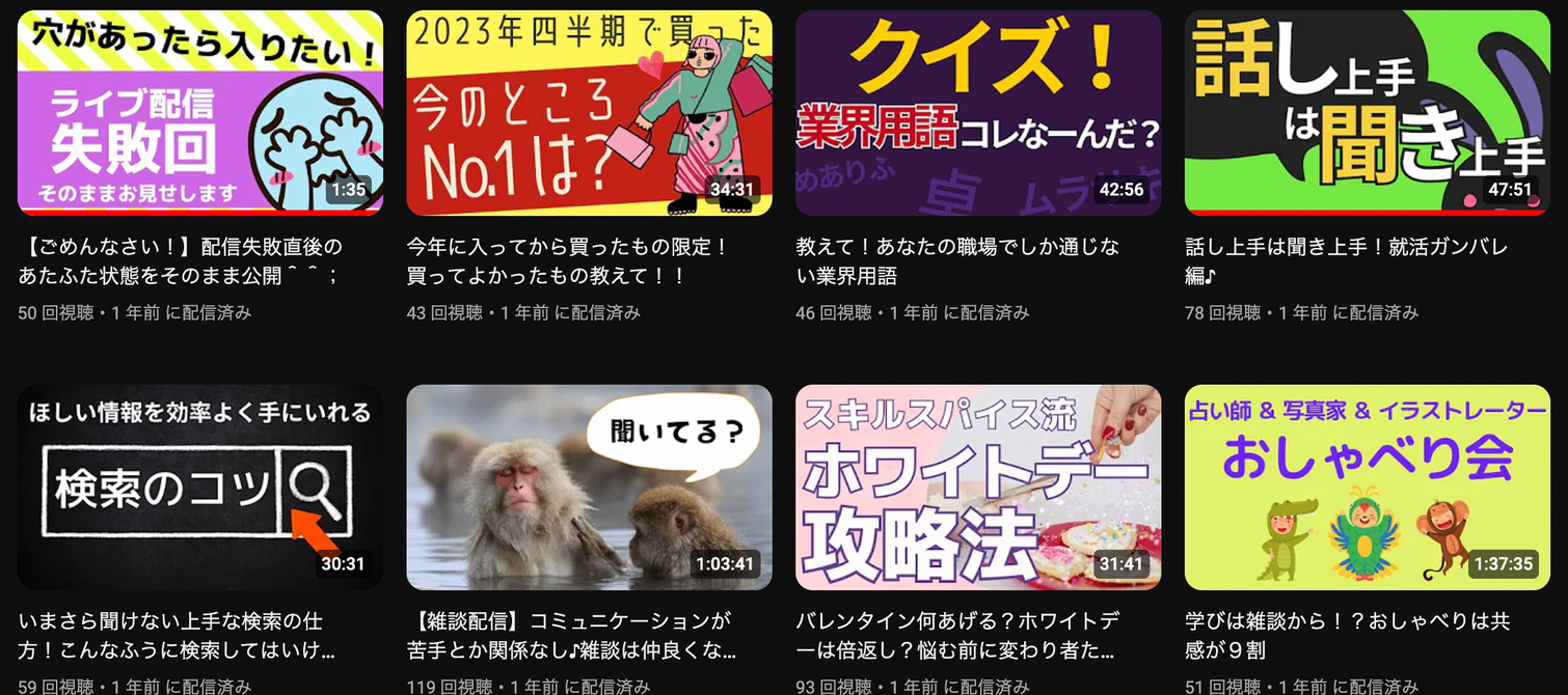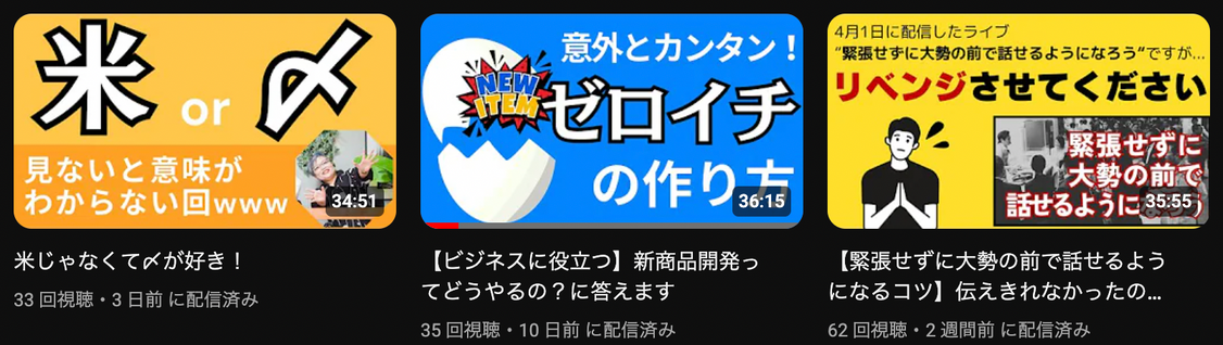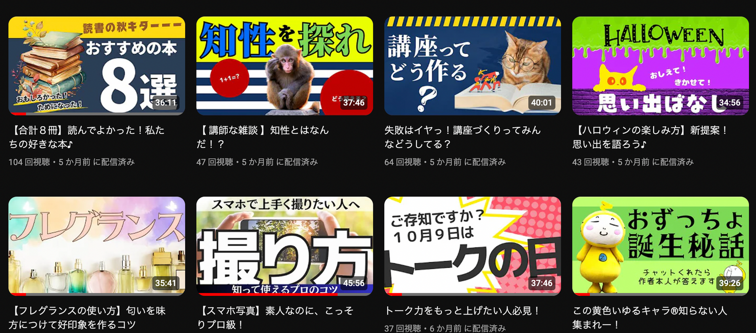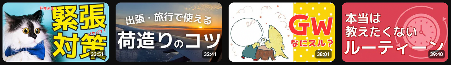 YouTubeチャンネルで実際に使っているものをそのまま一部を載せております