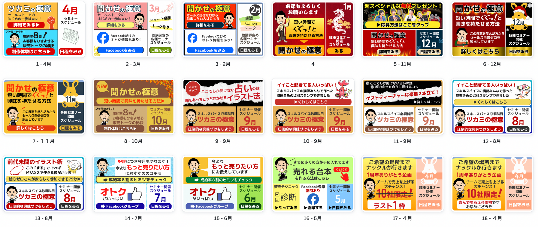 季節やクライアント様のご希望に合わせて作っているものです(タップ率30%でリッチメニューでの効果として業界的にもいい数字を出しております)